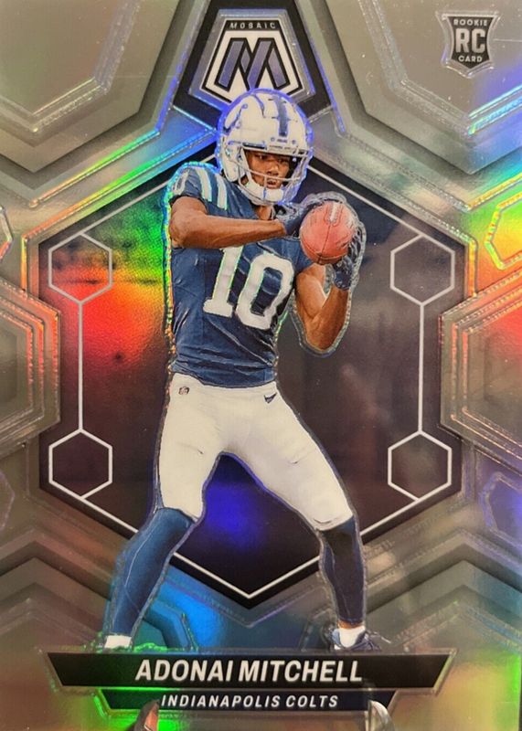 The Adonai Mitchell 2024 Mosaic #350 Silver Rookie card in Raw condition has moved up $0.04 (+2.5%) in the last 30 days and was last sold for $1.65 .