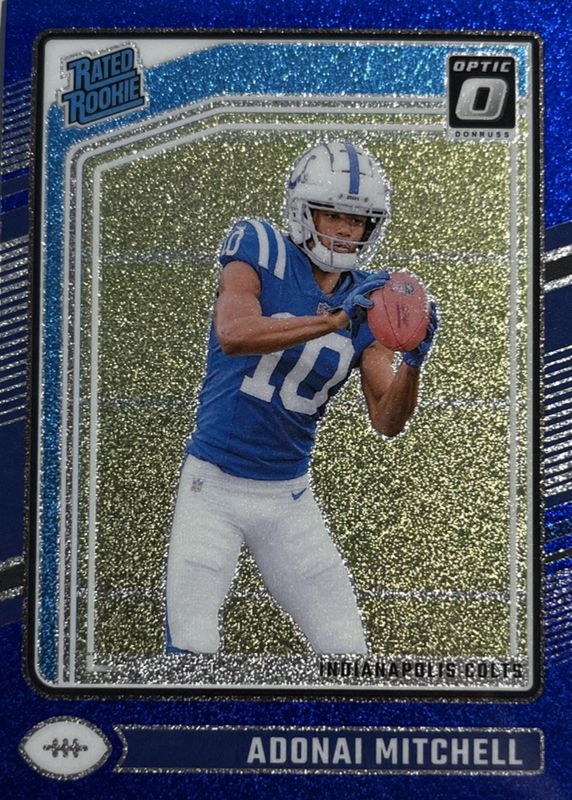 2024 Donruss Optic Blue Glitter Rated Rookie #203 Adonai Mitchell! Case Hit!