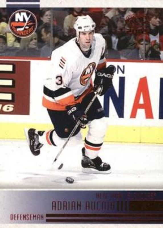 The Adrian Aucoin 2004 Pacific #163 Red card is 1 of 3 Adrian Aucoin's card variations in the 2004 Pacific set being tracked by Sports Card Investor, including Base, and Blue /250.