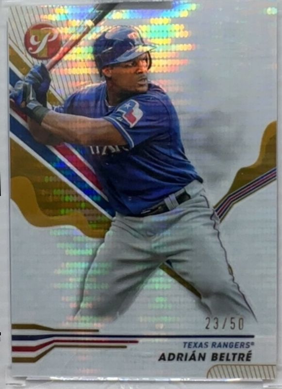 The Adrian Beltre 2024 Topps Pristine #211 Pristine Gold Refractor /50 card is 1 of 18 Adrian Beltre's card variations in the 2024 Topps Pristine set being tracked by Sports Card Investor, including Base, Pristine Refractor, Refractor, Green Refractor /150, and Pristine Purple Refractor /99.