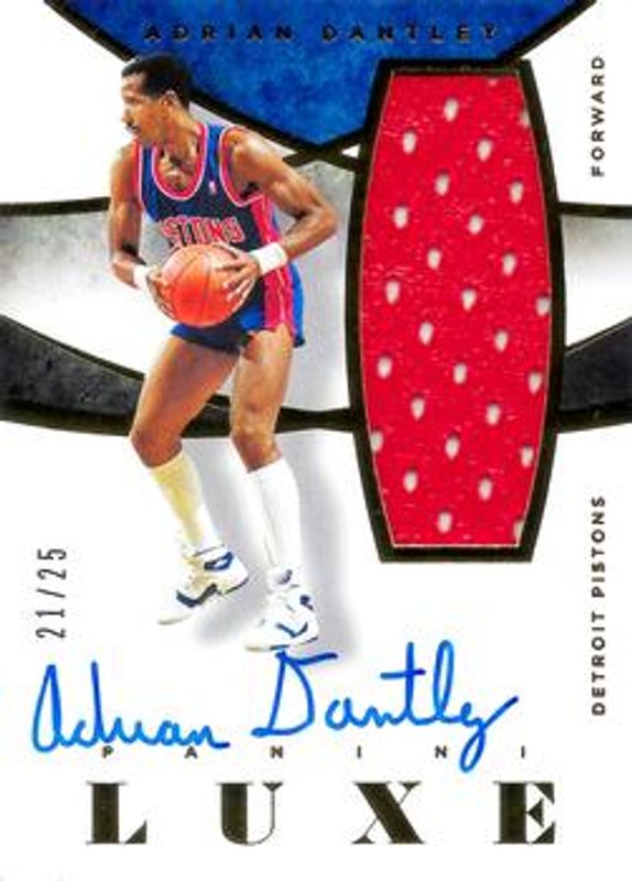 The Adrian Dantley 2014 Luxe #M-AD Memorabilia Autographs - Prime /25 card is 1 of 13 Adrian Dantley's card variations in the 2014 Luxe set being tracked by Sports Card Investor, including Base /40, Silver /25, Gold /10, Black /1, and die-cut Autographs /60.