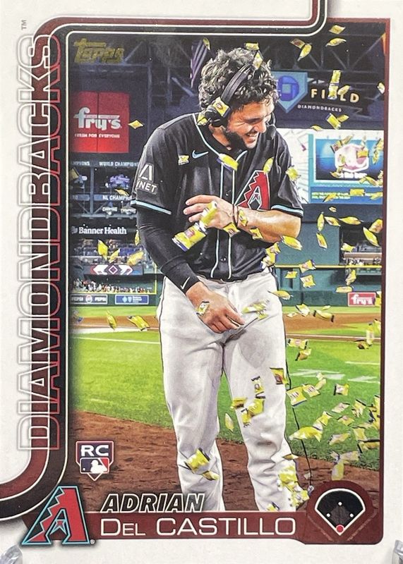 This card is 1 of 95 Adrian Del Castillo's card variations in the 2025 Topps set being tracked by Sports Card Investor, including Base, Aqua Holo Foil, Aqua Rainbow, Diamante Foil, and Eggs.