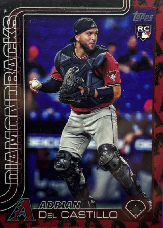 This card is 1 of 95 Adrian Del Castillo's card variations in the 2025 Topps set being tracked by Sports Card Investor, including Base, Aqua Holo Foil, Aqua Rainbow, Diamante Foil, and Eggs.