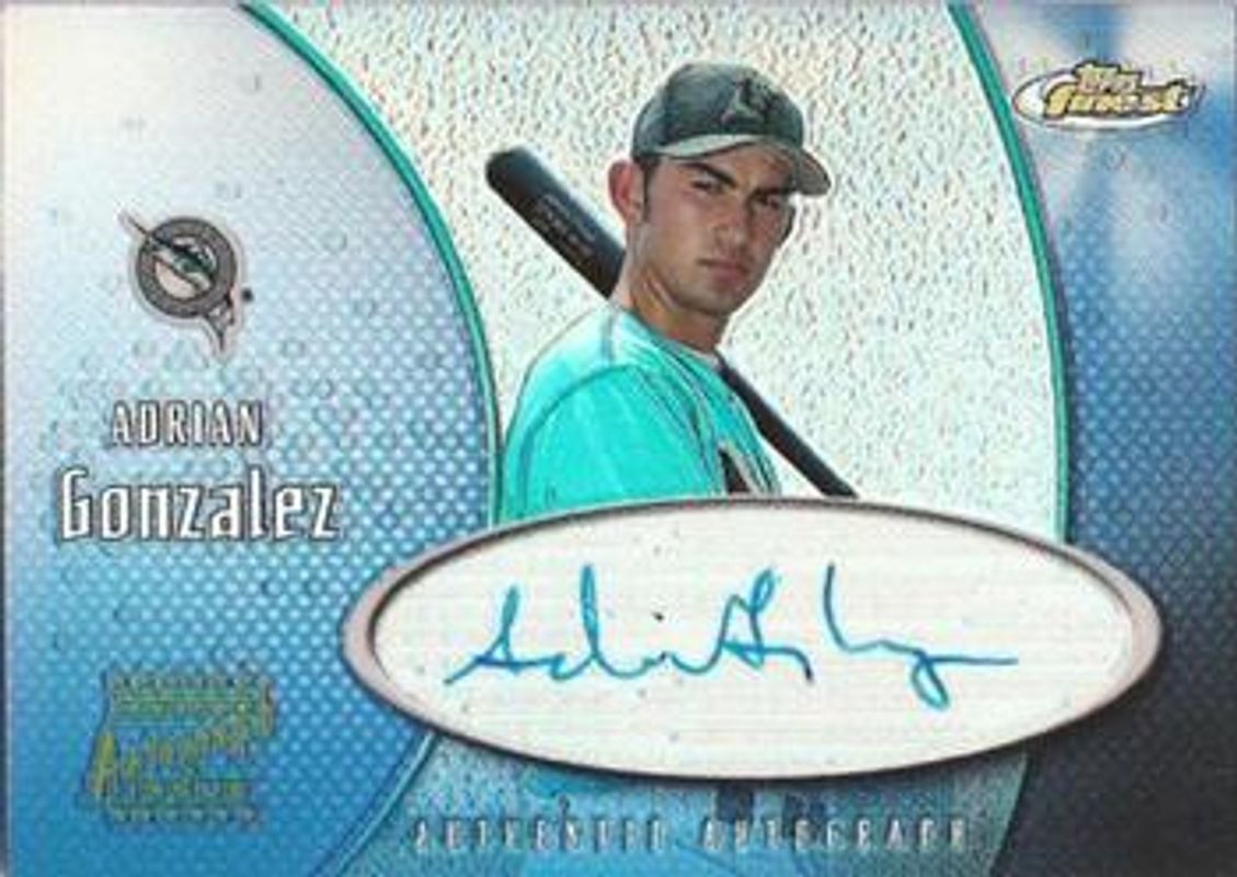 The Adrian Gonzalez 2001 Topps Finest #FA-AG Autographs card is 1 of 3 Adrian Gonzalez's card variations in the 2001 Topps Finest set being tracked by Sports Card Investor, including Base /999, and Refractors /499.