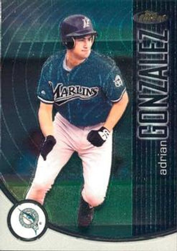 The Adrian Gonzalez 2001 Topps Finest #6 Base /999 card is 1 of 3 Adrian Gonzalez's card variations in the 2001 Topps Finest set being tracked by Sports Card Investor, including Refractors /499, and Autographs.