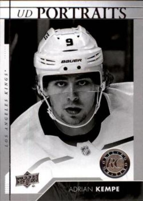 The Adrian Kempe 2017 Upper Deck #P-100 UD Portraits Rookie card is 1 of 27 Adrian Kempe's card variations in the 2017 Upper Deck set being tracked by Sports Card Investor, including Young Guns Base, Young Guns Canvas, Gold Rainbow Foil, Silver Foil, and Young Guns - Clear Cut.