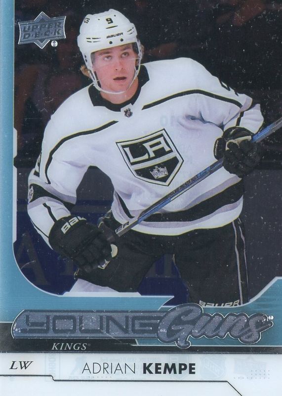 This card is 1 of 27 Adrian Kempe's card variations in the 2017 Upper Deck set being tracked by Sports Card Investor, including Young Guns Base, Young Guns Canvas, Gold Rainbow Foil, Silver Foil, and Young Guns - Gold Rainbow Foil.