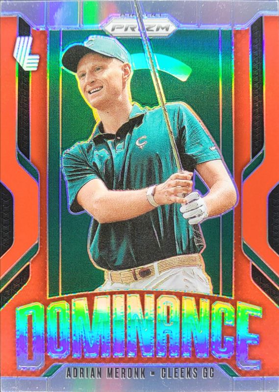 The Adrian Meronk 2025 Prizm LIV #2 Dominance - Red /125 card is 1 of 75 Adrian Meronk's card variations in the 2025 Prizm LIV set being tracked by Sports Card Investor, including Base, Checkerboard, Giraffe, Orange Tiger, and Pulsar.