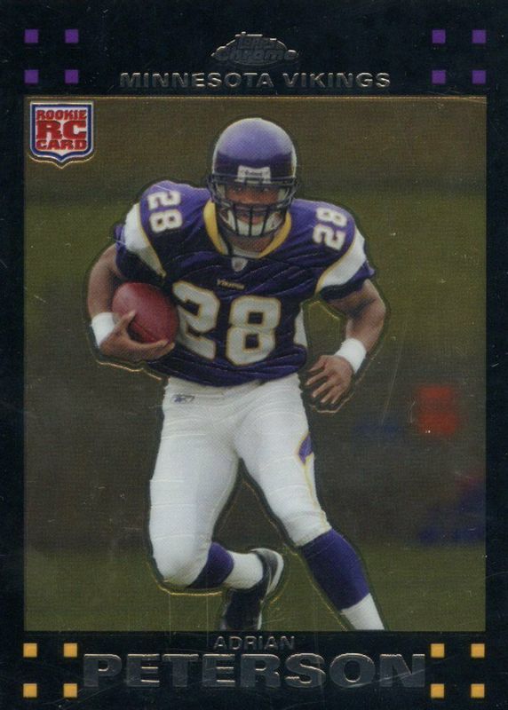 The Adrian Peterson 2007 Topps Chrome #TC181 Base Rookie card in Raw condition has moved down -$8.41 (-42.1%) in the last 30 days and was last sold for $11.59 .