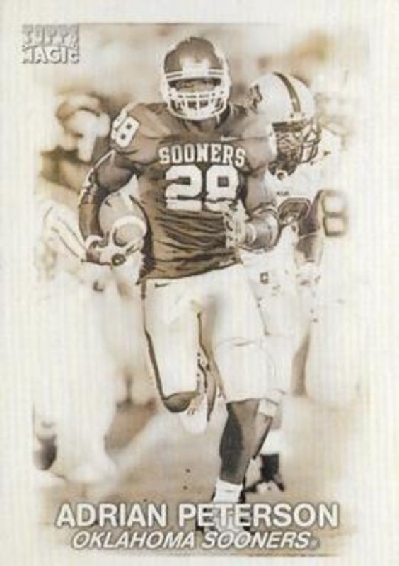 The Adrian Peterson 2009 Topps Magic #M3 1948 Magic card is 1 of 7 Adrian Peterson's card variations in the 2009 Topps Magic set being tracked by Sports Card Investor, including Base, Mini, Mini Black, All Americans, and Autographs.