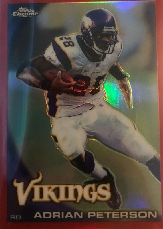 The Adrian Peterson 2010 Topps Chrome #C1 Red Refractor /25 card in Raw condition has not changed in price in the last 30 days and was last sold for $72.50 .