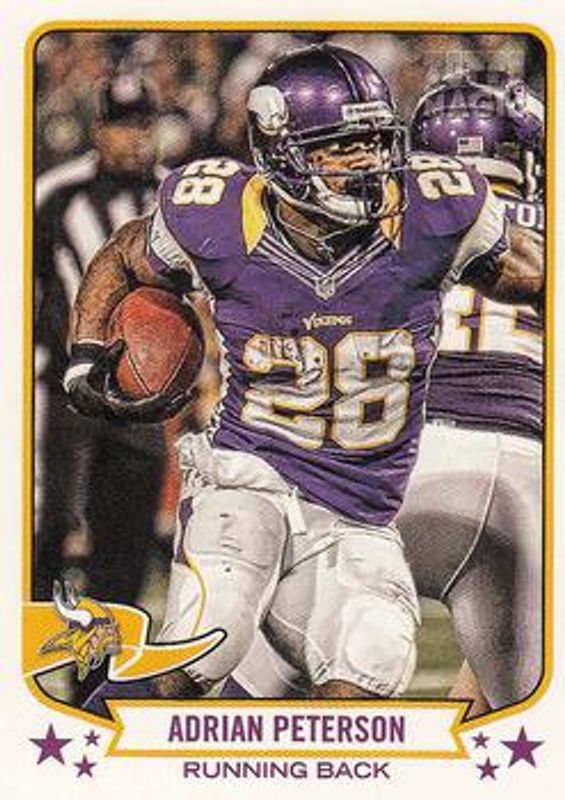 The Adrian Peterson 2013 Topps Magic #1 Base card is 1 of 12 Adrian Peterson's card variations in the 2013 Topps Magic set being tracked by Sports Card Investor, including Mini, Mini Black Border, Mini Blue Border, Mini Green Border, and Mini Orange Border.