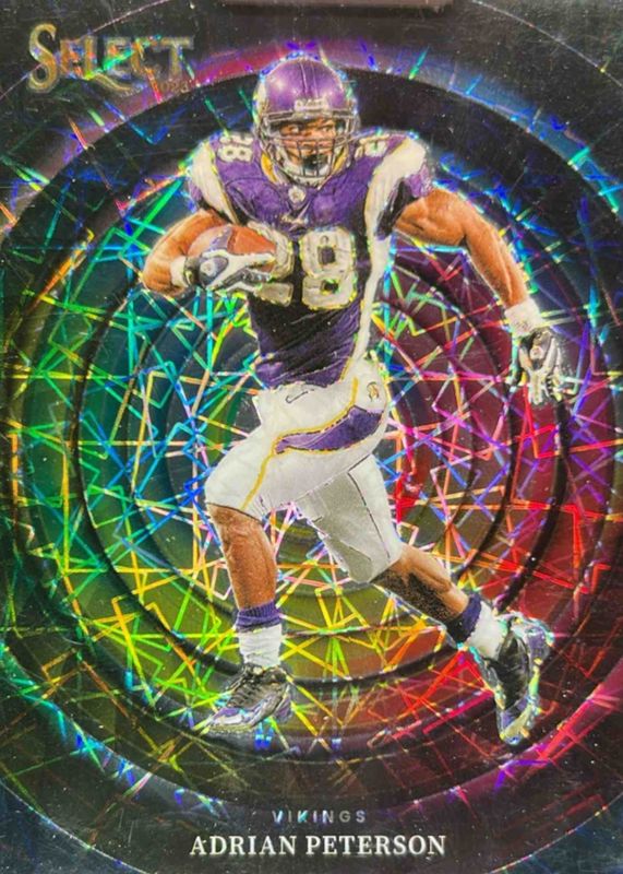 This card is 1 of 3 Adrian Peterson's card variations in the 2023 Select set being tracked by Sports Card Investor, including Color Wheel /(SSP), and Color Wheel - Gold /10.