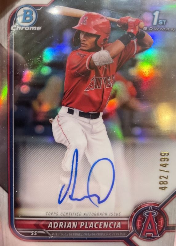 2022 Bowman Chrome #CPA-APA Adrian Placencia Auto Refractor #/499 Angels
