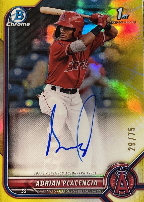 Adrian Placencia 2022 Bowman Chrome #CPA-APA Prospect Auto - Yellow Refractor /75 (1st) RAW Price Guide