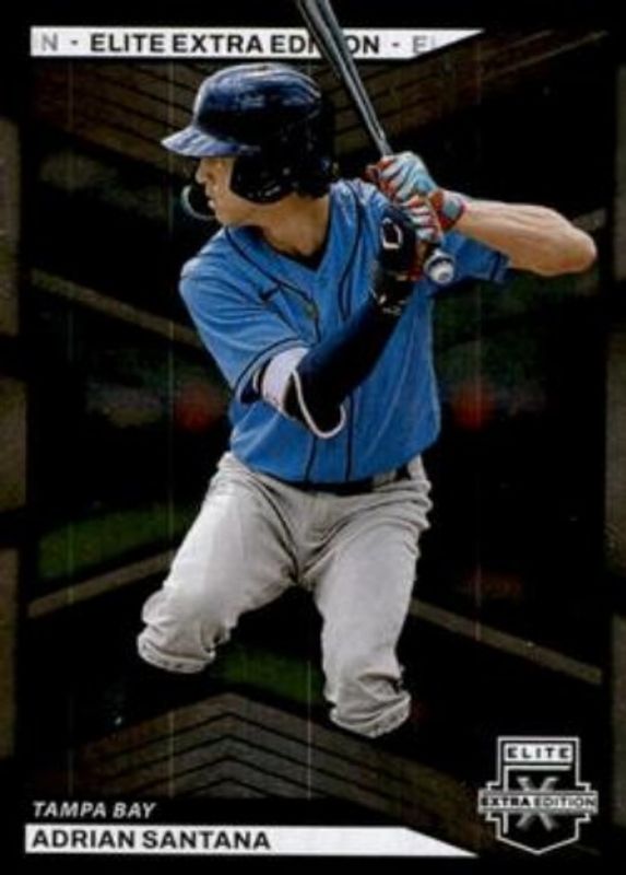 The Adrian Santana 2023 Elite Extra Edition #55 Base card is 1 of 61 Adrian Santana's card variations in the 2023 Elite Extra Edition set being tracked by Sports Card Investor, including Pink, Signatures, Status Green /499, Signatures die-cut /399, and Aspirations Blue /349.