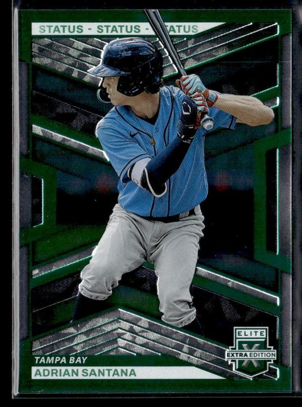 The Adrian Santana 2023 Elite Extra Edition #55 Status Green /499 card is 1 of 61 Adrian Santana's card variations in the 2023 Elite Extra Edition set being tracked by Sports Card Investor, including Base, Pink, Signatures, Signatures die-cut /399, and Aspirations Blue /349.