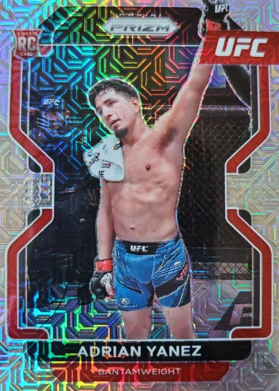 Adrian Yanez's MMA cards are available in at least 7 sets. Adrian Yanez's biggest 7-day price movers are 2022 Prizm UFC #107 Mojo /25, 2022 Prizm UFC #107 Orange /99, and 2022 Prizm UFC #107 White Sparkle /(SSP).