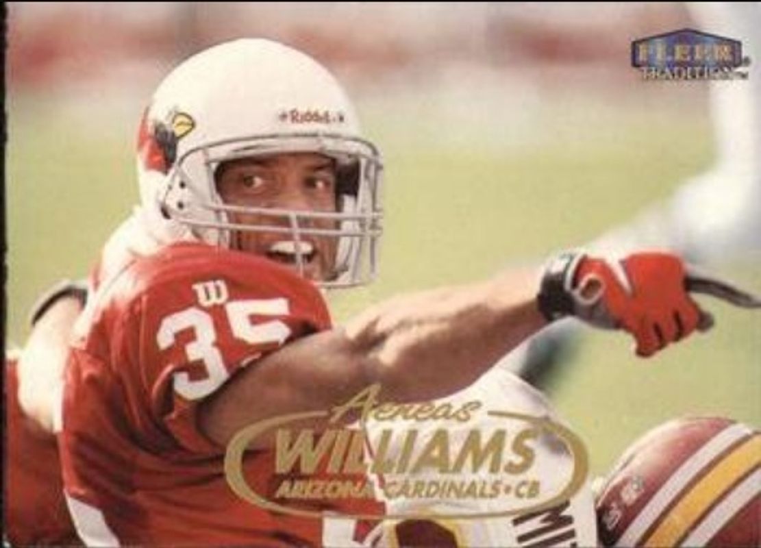 The Aeneas Williams 1998 Fleer Tradition #167 Base card is 1 of 2 Aeneas Williams' card variations in the 1998 Fleer Tradition set being tracked by Sports Card Investor, including Heritage /125.