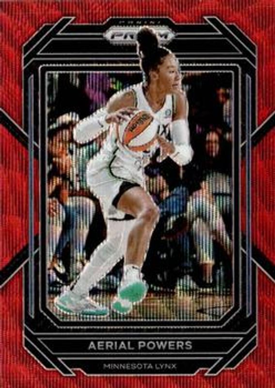 The Aerial Powers 2023 Prizm WNBA #15 Ruby Wave card is 1 of 32 Aerial Powers' card variations in the 2023 Prizm WNBA set being tracked by Sports Card Investor, including Base, Blue Wave, Green, Hyper, and Ice.