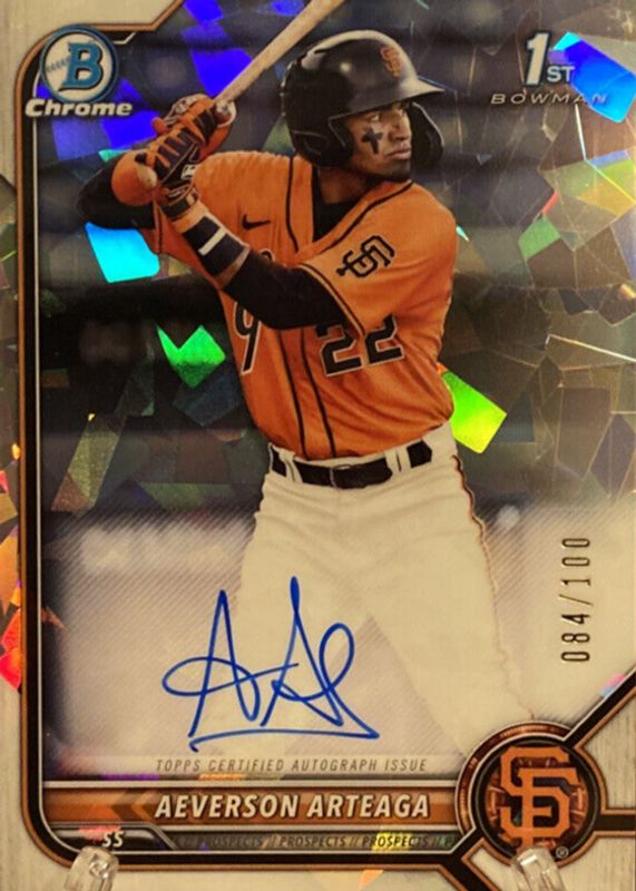 2022 Bowman Chrome Aeverson Arteaga Atomic Auto /100 1st Giants