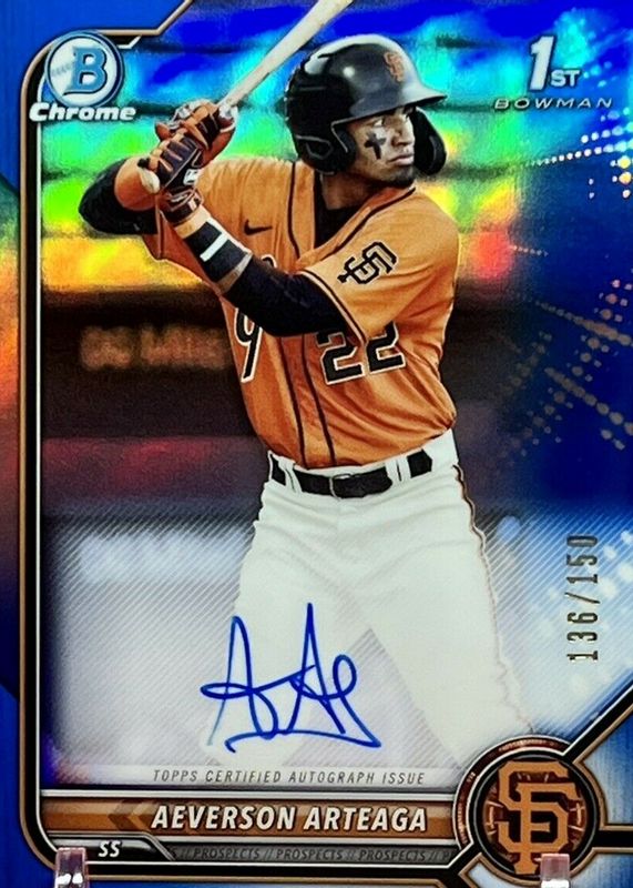 2022 Bowman Chrome 1st Blue Refractor Auto 082/150 Aeverson Arteaga *Giants*