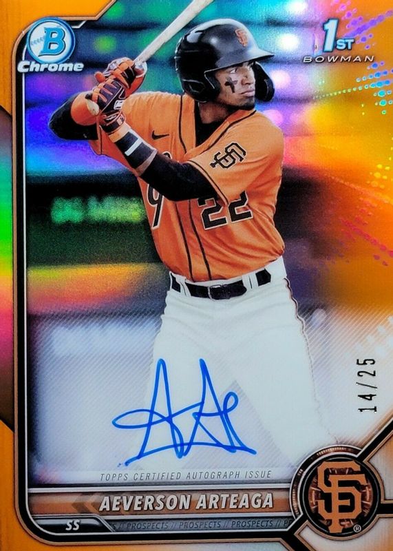Aeverson Arteaga 2022 Bowman #CPA-AA Chrome Prospect Auto - Orange Refractor /25 (1st) RAW Price Guide