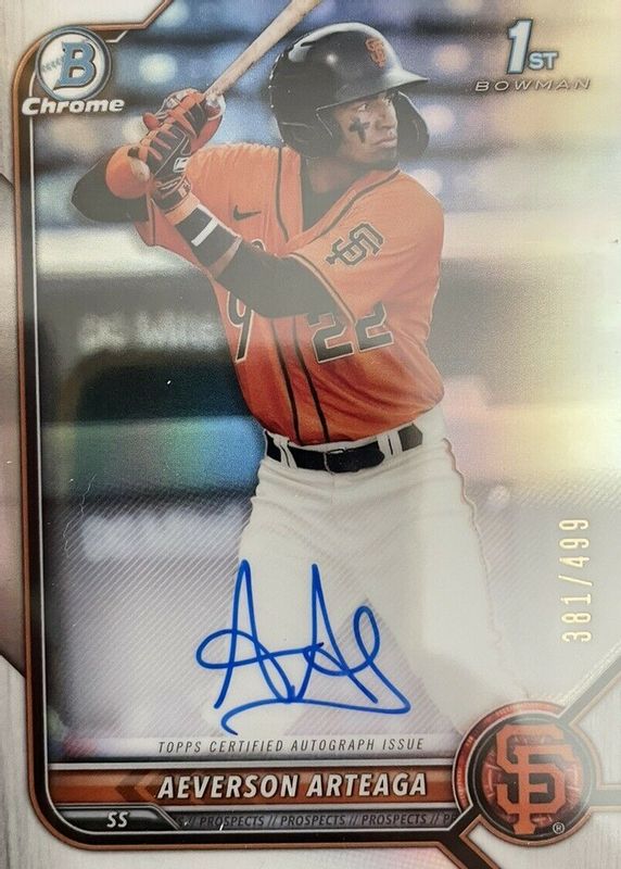 2022 Bowman Chrome Refractor Auto 1st Aeverson Arteaga SP /499 Giants