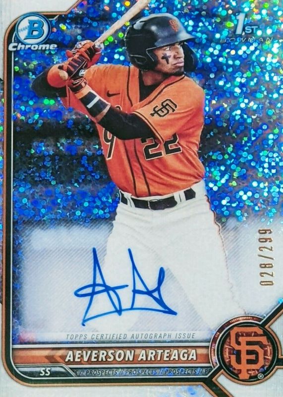 2022 Bowman Chrome Speckle Refractor Auto 1st Aeverson Arteaga Giants SP /299