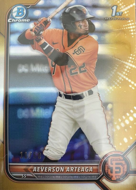 2022 Bowman Chrome Gold Aeverson Arteaga 1st Refractor /50 Giants