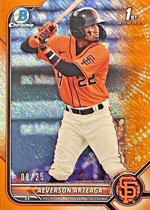 Aeverson Arteaga 2022 Bowman #BCP-82 Chrome Prospects - Orange Shimmer Refractor /25 (1st) RAW Price Guide