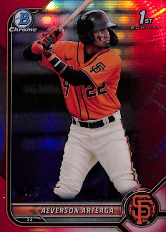 Aeverson Arteaga 2022 Bowman #BCP-82 Chrome Prospects - Red Refractor /5 (1st) RAW Price Guide