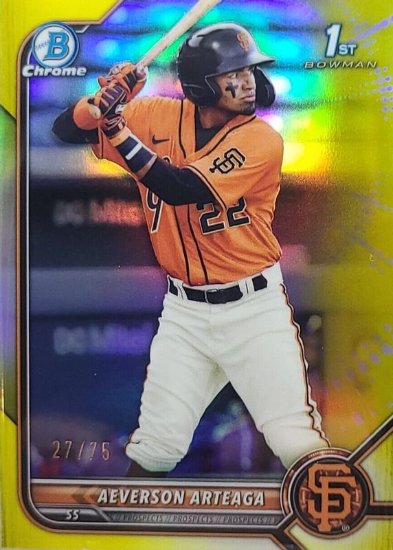 2022 Bowman Chrome Aeverson Arteaga Yellow Refractor 27/75 Giants
