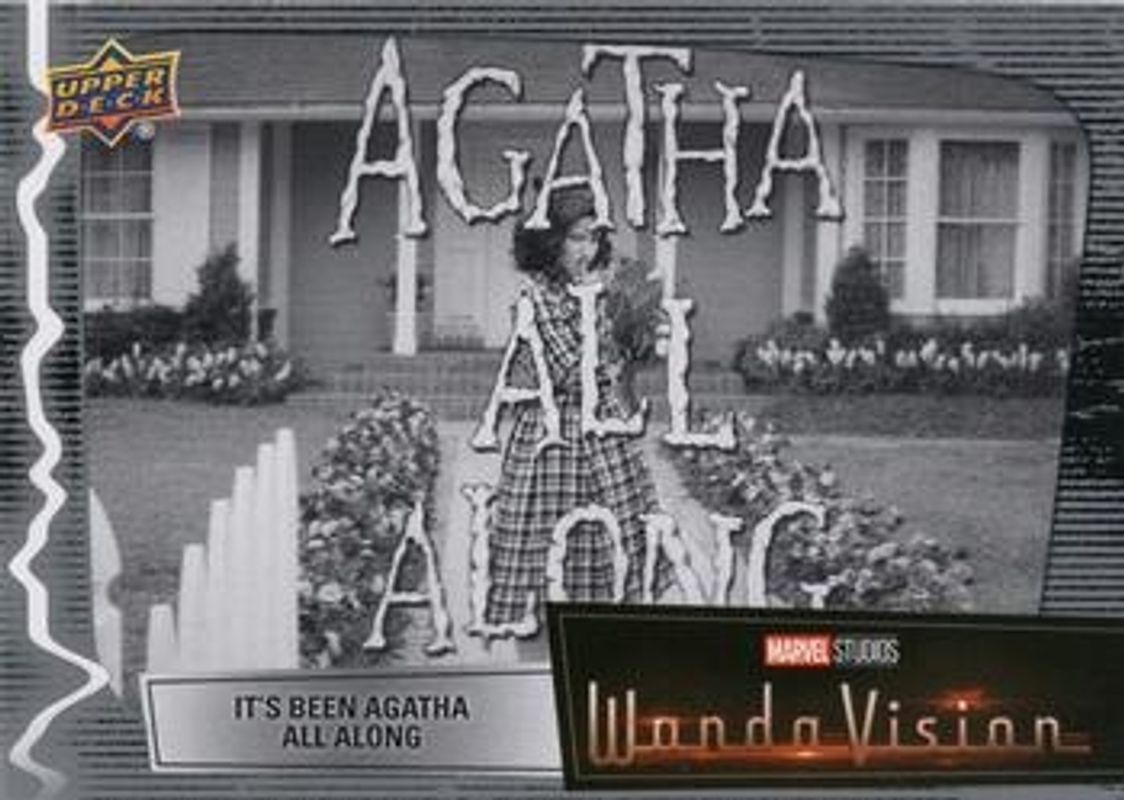 The Agatha All Along 2023 Upper Deck Wandavision #66 Base card is 1 of 12 Agatha All Along's card variations in the 2023 Upper Deck Wandavision set being tracked by Sports Card Investor, including Gold, Mind Stone Yellow, Purple Spell, Scarlet Red, and Green Vision /225.