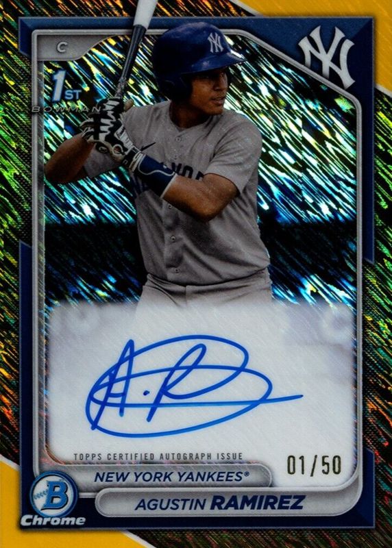Auctions Ending Soon for Agustin Ramirez 2024 Bowman #CPA-AR Chrome Prospect Auto - Gold Shimmer Refractor /50 (1st) RAW