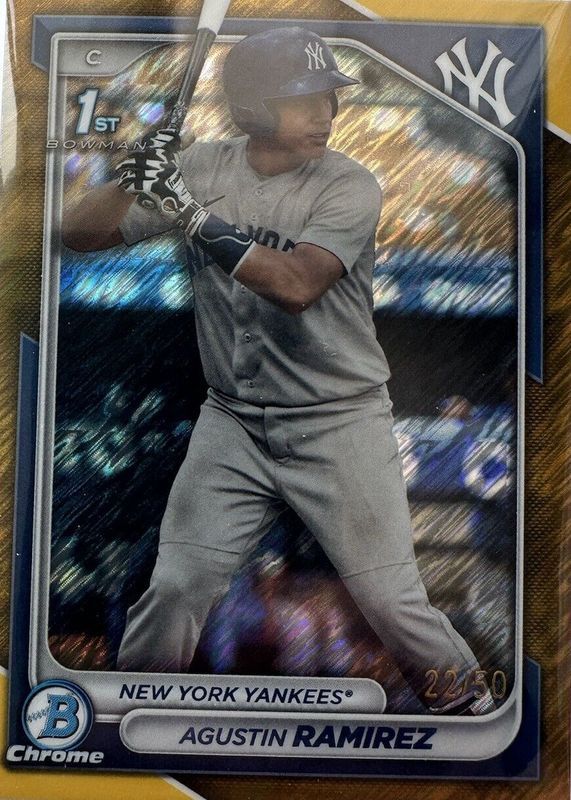The Agustin Ramirez 2024 Bowman #BCP-85 Chrome Prospects - Gold Shimmer Refractor /50 (1st) card in Raw condition has not changed in price in the last 30 days and was last sold for $30.00 .