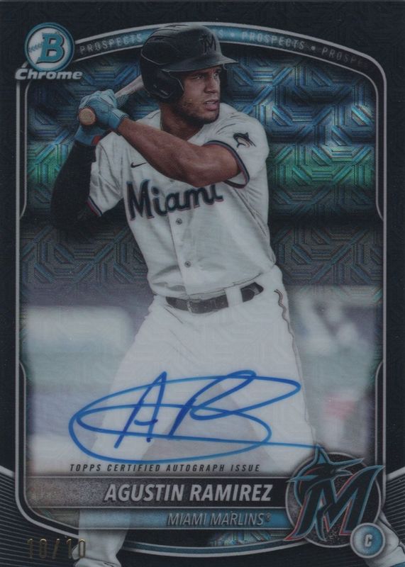 Best Prices Available For Sale of Agustin Ramirez 2025 Bowman Mega Box #BMA-AR Chrome Prospect Auto - Black Refractor /10