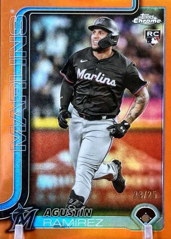 The Agustin Ramirez 2025 Topps Chrome Update #USC200 Orange Refractor /25 Rookie card in Raw condition has not changed in price in the last 30 days and was last sold for $42.99 .