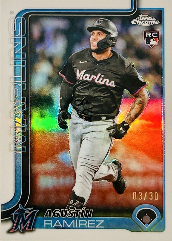 This card is 1 of 222 Agustin Ramirez's card variations in the 2025 Topps Chrome Update set being tracked by Sports Card Investor, including #USC38 Base, #USC200 Base, #USC200 Image Variation, #USC38 Rookie Debut, and #USC38 Geometric Refractor.