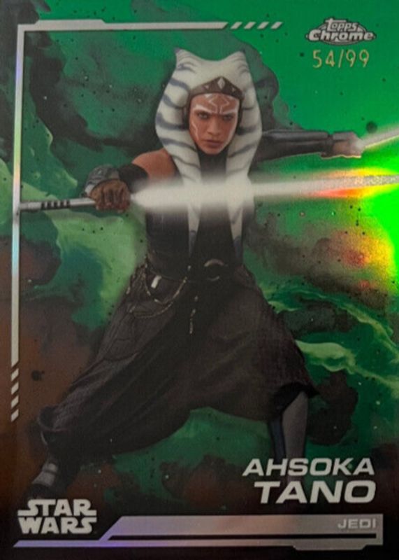 The Ahsoka Tano 2024 Topps Chrome Star Wars #1 Kashyyyk Green Refractor /99 card in Raw condition has not changed in price in the last 30 days and was last sold for $0.99 .