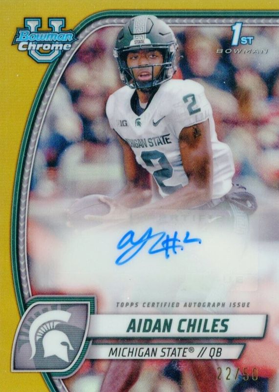 Aidan Chiles - 2024 Bowman Chrome University 1st True Gold Auto /50 - MSU PA-ACH