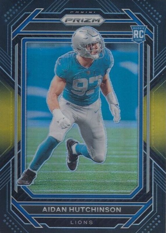 This card is 1 of 27 Aidan Hutchinson's card variations in the 2022 Chronicles set being tracked by Sports Card Investor, including Base, Prizm Black, Score Premium Update, Prizm Black - Silver, and Prizm Black - Red /99.