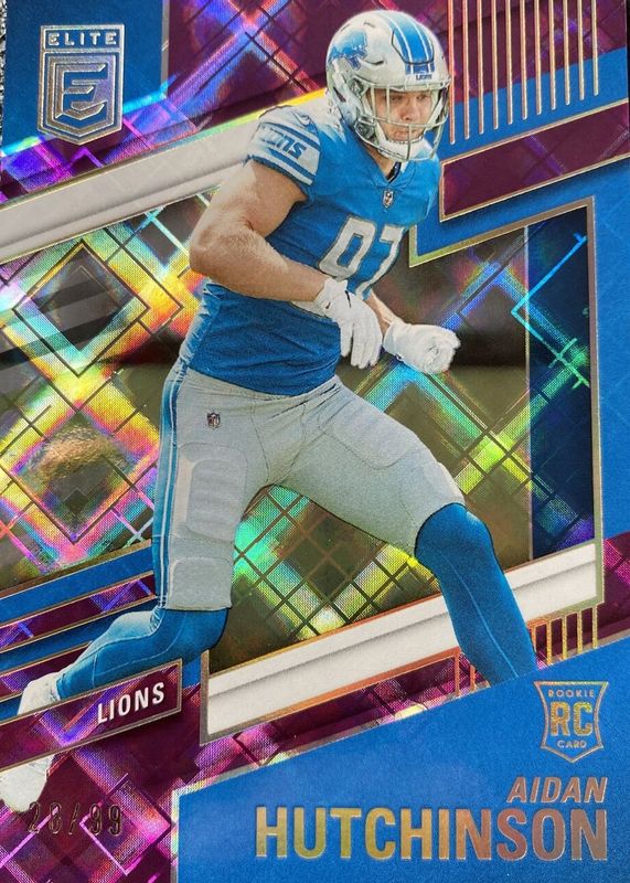 2022 Donruss Elite Aidan Hutchinson RC Purple Rookie #/99 Lions