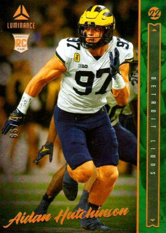 Aidan Hutchinson 2022 Panini Luminance GREEN RC ROOKIE #134 Michigan #'d /99
