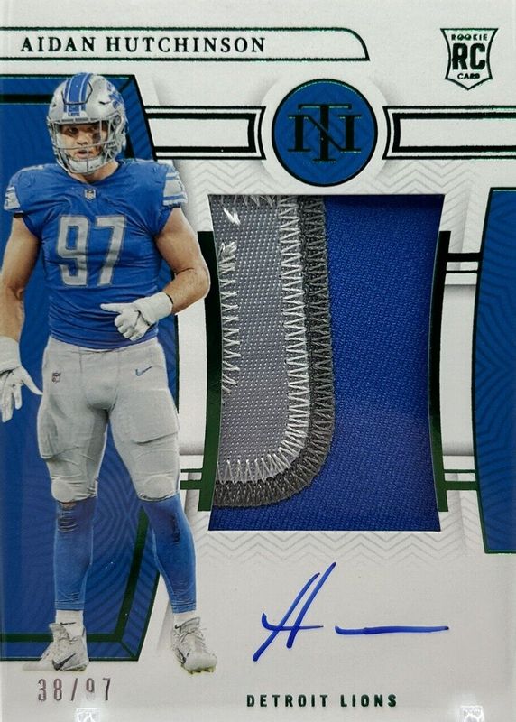 2022 National Treasures RPA Aidan Hutchinson Green /97 Lions Rookie Patch Auto