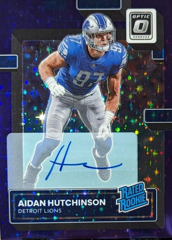 2022 Optic Aidan Hutchinson AUTO Rookie FOTL Purple Stars 13/50 Lions🔥