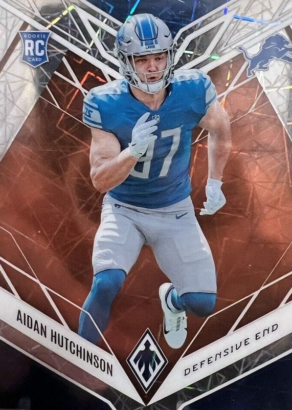 The Aidan Hutchinson 2022 Phoenix #113 Orange Lazer /75 Rookie card in Raw condition has not changed in price in the last 30 days and was last sold for $3.25 .