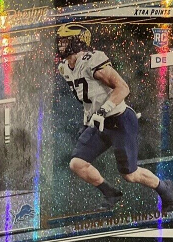 This card is 1 of 27 Aidan Hutchinson's card variations in the 2022 Prestige set being tracked by Sports Card Investor, including Base, Xtra Points Astral, Xtra Points Diamond, Xtra Points Galaxy, and Xtra Points Sunburst.