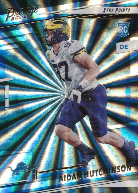 This card is 1 of 27 Aidan Hutchinson's card variations in the 2022 Prestige set being tracked by Sports Card Investor, including Base, Xtra Points Astral, Xtra Points Diamond, Xtra Points Dots, and Xtra Points Galaxy.