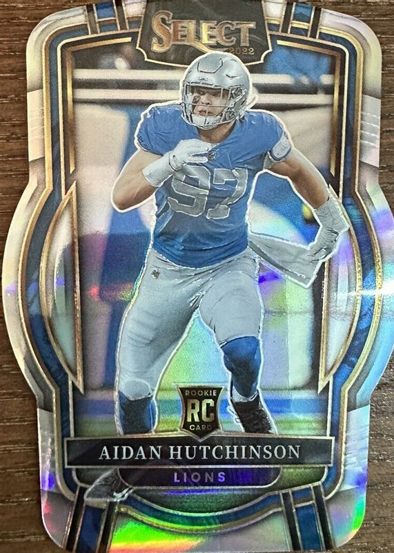 Aidan Hutchinson RC 2022 Select Football Club Level Silver Prizm Die-Cut Detroit